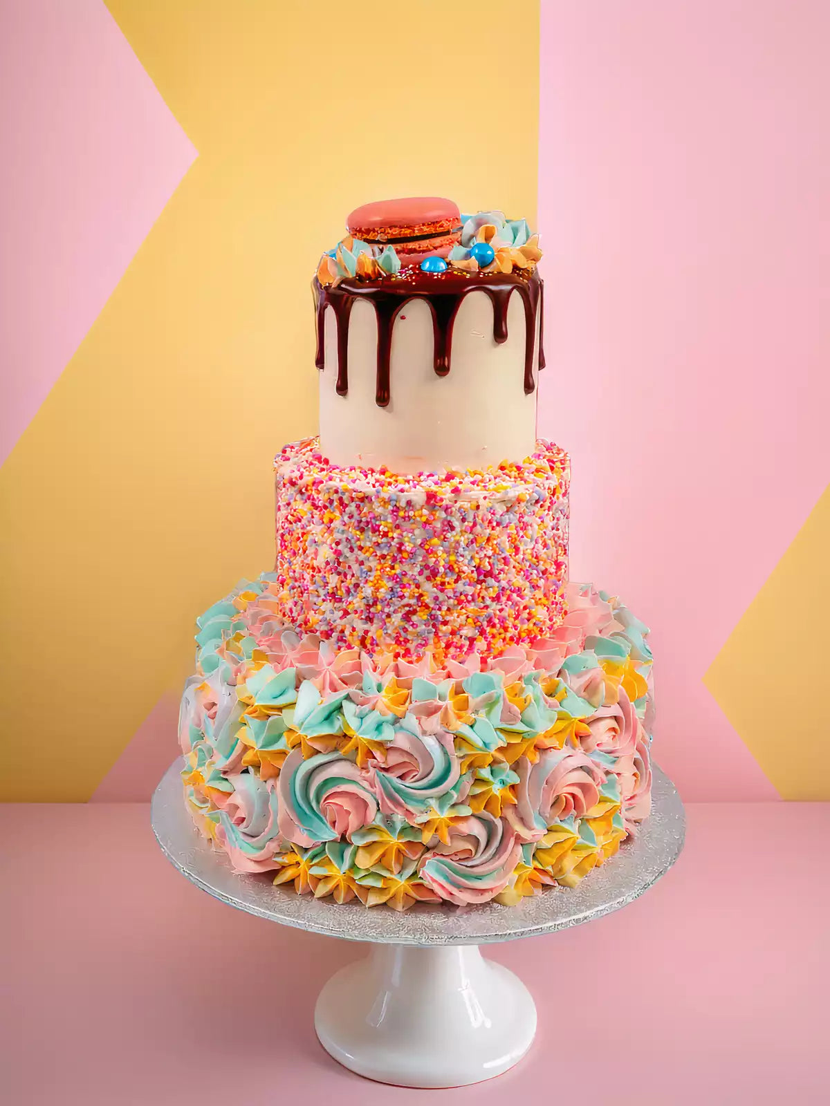 Cakes are transported upright in refrigerated, temperature-controlled vans. They arrive neat, set and photo-ready.